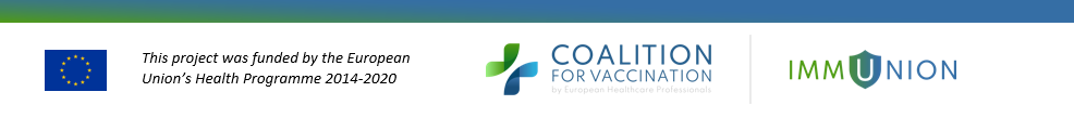 ‘The Coalition for Vaccination is excited to be supported by IMMUNION. The Coalition is a rather new initiative, bringing together European associations of healthcare professionals and students´ associations, and through IMMUNION it will become further consolidated. This will enable coalition members to effectively promote accurate information on vaccination, combat myths and exchange best practices.’ (EFN, CPME, PGEU – Co-chairs of the Coalition for Vaccination)