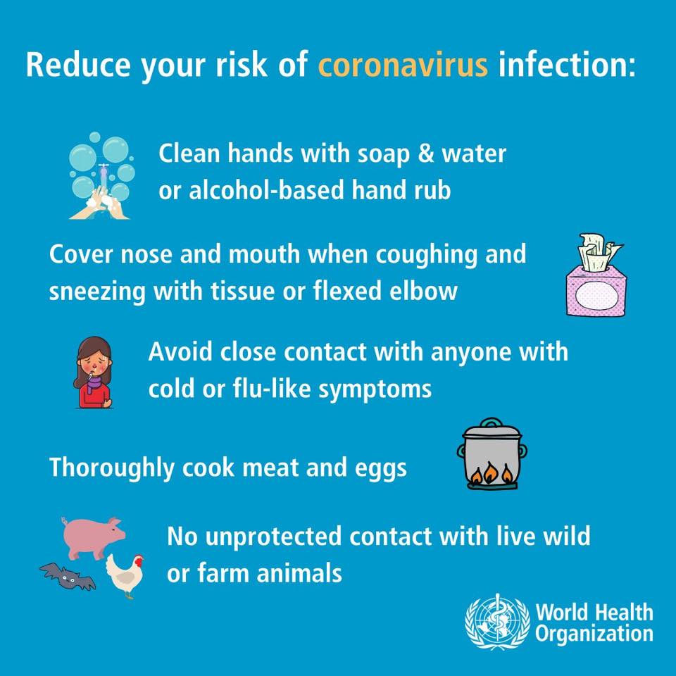 – Within health care facilities, enhance standard infection prevention and control practices in hospitals, especially in emergency departments. WHO does not recommend any specific health measures for travellers. In case of symptoms suggestive of respiratory illness either during or after travel, travellers are encouraged to seek medical attention and share their travel history with their health care provider.