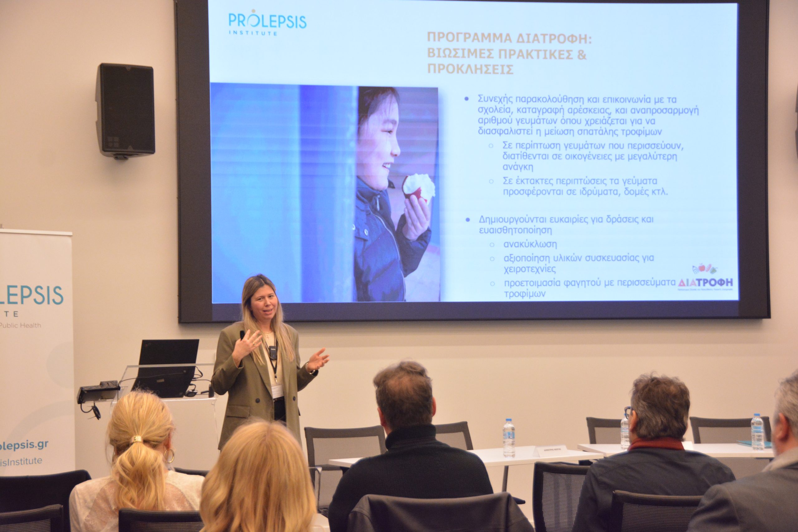 Στην εκδήλωση συμμετείχαν φορείς με σημαντική δραστηριότητα στην παροχή δωρεάν σίτισης, στην πρόληψη σπατάλης τροφίμων και στην υποστήριξη ευάλωτων ομάδων (Μπορούμε, Τράπεζα Τροφίμων, Συσσίτιο Ι.Ν Ευαγγελιστρίας Πειραιώς, Equal Society, Humanity Greece, ΑΒ Βασιλόπουλος, Ινστιτούτο Prolepsis), με σκοπό να μοιραστούν εμπειρίες και καλές πρακτικές και να διερευνήσουν καινοτόμες προσεγγίσεις στη βιώσιμη επισιτιστική βοήθεια. Η ομάδα του Ινστιτούτου Prolepsis παρουσίασε ευρήματα, πρακτικές, δυσκολίες και εμπόδια από την εμπειρία του στο Πρόγραμμα Σίτισης και Προώθησης Υγιεινής Διατροφής – ΔΙΑΤΡΟΦΗ που υλοποιεί για 14η συνεχή σχολική χρονιά σε κοινωνικοοικονομικά ευάλωτες περιοχές της χώρας.